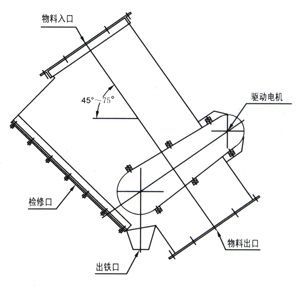 工作原理:串接于傾角45-75度的物料輸送管道中,當物料流經該除鐵器時,其中的鐵磁性物質被吸附到管道除鐵器的不銹鋼管壁上,隨永磁體的移動而逐漸向出鐵口方向滑動,實現與物料分離。在出鐵口處,因永磁體沿循環(huán)運動方向移開,鐵磁性物質失去磁力吸引,在重力的作用下從出鐵口排出,實現物料的自動除鐵。